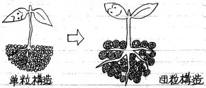 土は岩が壊れて細かい砂や粘土になったものですが、これに植物や動物の死骸の有機物が入り、微生物などの生き物が住み、空気や水や肥料分を蓄えられるようになると「土壌」になります。