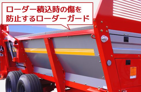 また、横方向からの堆肥の落ちこぼれを防ぐ補助アオリを装備(※)。積み込み時にはたためるので邪魔になりません。